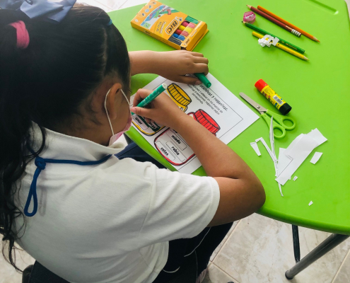 El espacio terapéutico individual busca sanar y acompañar procesos difíciles que las niñas viven, pero también a través de las terapias grupales se brinda información y materiales sobre el fenómeno de la violencia de género, y les ayuda a través de metáforas de libre creación, a buscar estrategias para prevenir y superar problemas que las niñas detectan juntas. Una cosa es imaginar lo que debe de ser para una niña cuya familia experimenta violencia doméstica, y otra cosa es ver imágenes gráficas que nos brindan una mirada interna a como las niñas hacen sentido y dan significado a esas y otras experiencias. También en este espacio terapéutico grupal, se fortalecen sus Habilidades Socioemocionales como la autonomía, la visibilidad, movilidad, y se promueven herramientas internas como el agenciamiento (capacidad de hacer uso de los activos de que se dispone), y la autoeficiencia (que es la confianza en las competencias que le son propias).